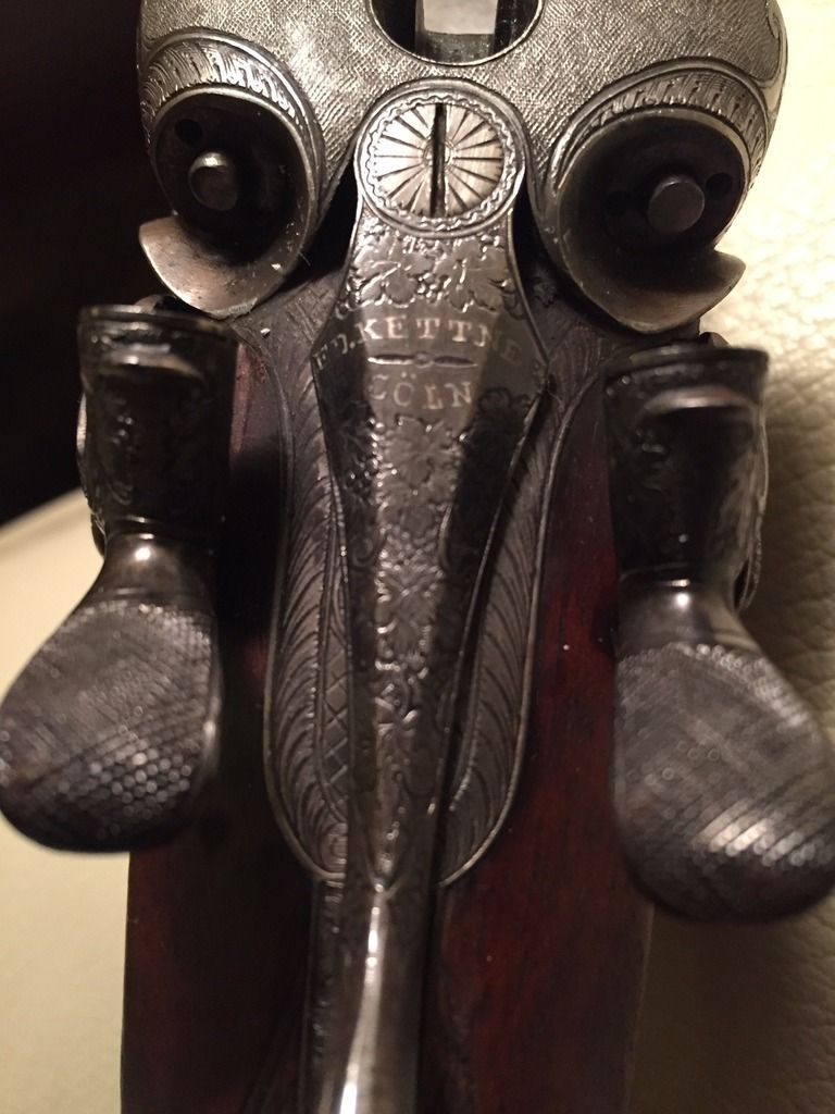 The mystery continues... I noticed some faint writing on the top lever and after cleaning it up a bit, you can see the following in the pic below (ED. KETTNER COLN) in gold lettering. What do you think of that? BillK [img:center]http://  [/img]