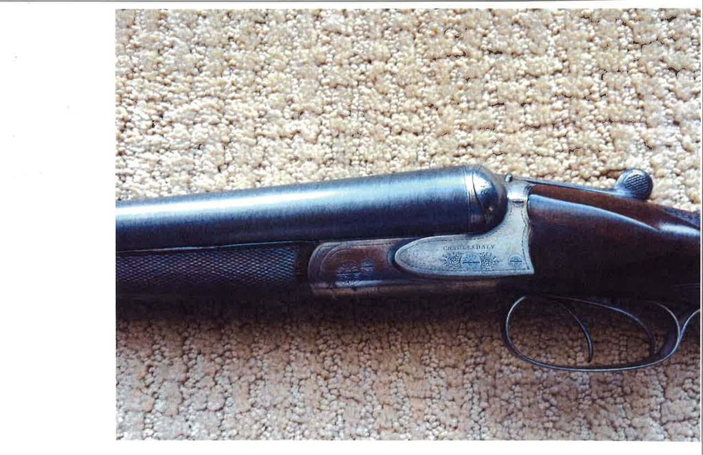 It is good to see another Prussian Daly thread come up. Since the experts are assembled, I was hoping for a grade number on the only example I own. I know it is one of the least expensive grades, being an unadorned 12ga featherweight extractor model. I bought it partially restored with a Mark Larson butt transplant and cleaned up bores.  The action flats show what I think is a serial number (834 or possibly 334) and a light Prussia stamp:  The barrel flats show the HAL and crossed pistols trademark:  Can anyone tell me what model designation or grade this one is...Geo Sorry for the pics; they came out funny looking. So it reads Featherweight on the top rib? 2nd series. Maybe a Modell Nr. 118 or Nr. 125? Cheers, Raimey rse