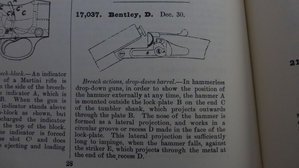 Yes, as earlier thought, it appears to be a Bentley [Joseph or David] patent variation. Here are examples of both Bentley patents noted. Several makers, as well as Bentley, used these patents. I have seen Turner, Holland , and several others. The gun in question may contain the D. [David] Bentley patent 17,037 of 1884 [seen below] Without better and more detailed pictures it is hard to tell which Bentley or which Bentley patent is most related to the Cashmore gun in question. I suspect strongly the Cashmore relationship is with the David Bentley patent o 1884.