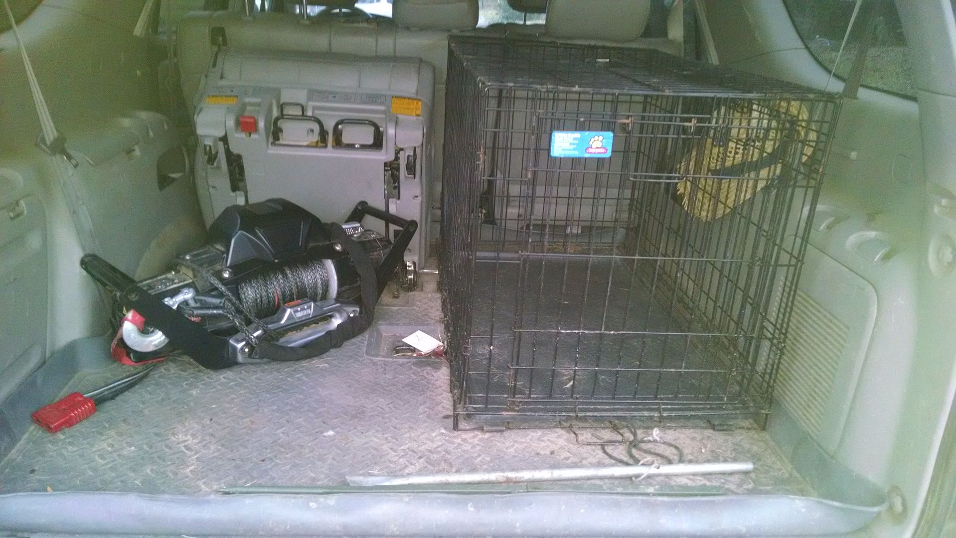 Here’s my 2003 “Brake”. 190,000 miles, 4X4. 4X4 was invented to insure that vehicles would get stuck farther into the woods than those vehicles without 4X4. To offset this design feature, I had mine wired for front and back winch work with a 2” receiver installed in the front. The winch is an 8000S Warn “portable” with a 100’ of Spectra rope which trims 18 lbs. off of what stainless wire would weigh. It saved my bacon last turkey season miles from help. The crate holds my two Brittanys comfortably. There is room for another crate in the second row of seats. I removed one of the third row seats to accommodate the crate. The Sequoia is a comfortable ride for family trips. I will re-power if necessary.