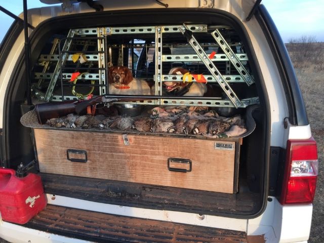 I did the new-to-me 2012 differently than the others I owned. I removed the third row seats and their seat belts. Then I installed my Truck Vault drawer (its fifth Expedition). I built an enclosure that is anchored to the seat belt reel attachment point, the seat belt hanger attachment point, and the third row seat bolt down points. There is a 1/8" thick vinyl mat on top of the Truck Vault drawer that simply slips out underneath the rear of the enclosure. This lowers the misery of cleaning up after a dog craps or throws up in the truck. I have comfortably hauled three French Brittanys and two Labs along with four hunters, along with all the necessary gear, provisions, and water in my rig.