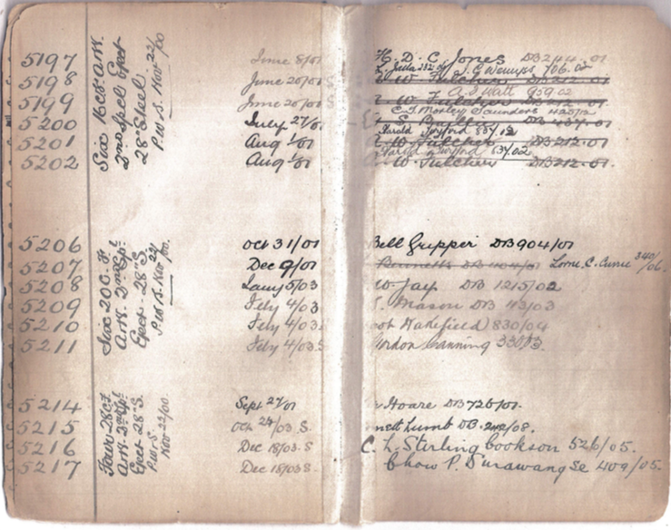 The other ledgers I have viewed in some detail are Purdey's for the 1870s-1890s, where the serial number was allocated against the gun at the time of order, often without any date. I found it better to more accurately date the guns from the separate barrel regulating books, which recorded the date on which the nearly finished gun was tested on the range.