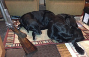 My 2 labs and Remington 1889 Grade 3 after a long day with no harvest. The Rem is polished ready for case colouring, just haven't got to it yet.
