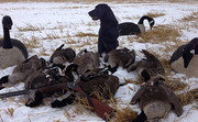 My personal opening day for geese December 1. Usually some snow on the ground. Today was about 30F and slight snow with a nice wind. My fair weather friends thought it was too cold and stayed in so I slogged it out alone. My waterfowl hunting is a comradory affair but sometimes not a bad thing to do solo. Pics of Huck my 10 year old lab who is a retired field trial dog and a tricked out Citori with 26" barrels. (click on pics to enlarge)