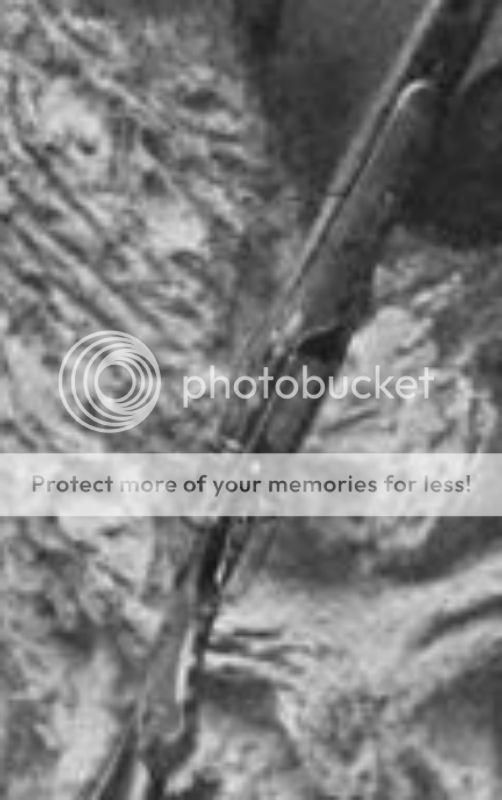 There's something weird going on with the rear end of the forend in the picture of the gun with the "dude". Are you sure it's the same gun as the one pictured beneath it? There looks to be something almost akin to a "clip' in the top pic.