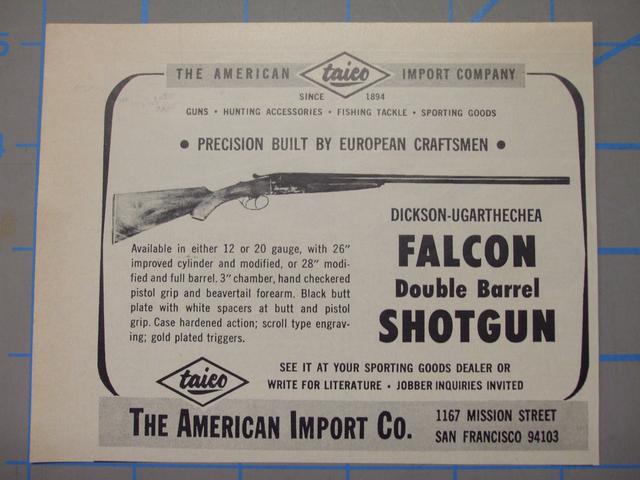 Ted, I bought my Ugartechea Falcon at a gun show, and it was just too cheap to pass up for the condition and overall quality. I didn't even know it was the Falcon model until you educated me. No one will confuse it for a "Best" gun, but fit, engraving, and finish certainly beats the current crop of Turkish doubles. Mine has never given me a bit of problems either. I shoot it quite a bit around the house at pests like grackles and crows. Grackles get pretty quick and evasive after they learn to flee the scene when they see you come outside with a gun, but the Falcon fits well and gets the job done. I feed it just about anything that I wouldn't put through my old vintage doubles. The comb on the stock is somewhat sharp, and it does smack your cheekbone a bit with heavy loads such as 2 3/4" and 3" magnums. But it is a light gun, as I recall, not much over 6 1/2 lbs.
