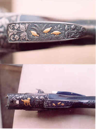This gun is magnificent. The engraved, should really be called sculpted, metal is so different and so beautiful. I am taken aback to think of it as typical Prussian. I know that this gun was not engraved by the typical engraver in Suhl. It almost looks French or Belgian to me. The gold inlays could have not been more well executed.