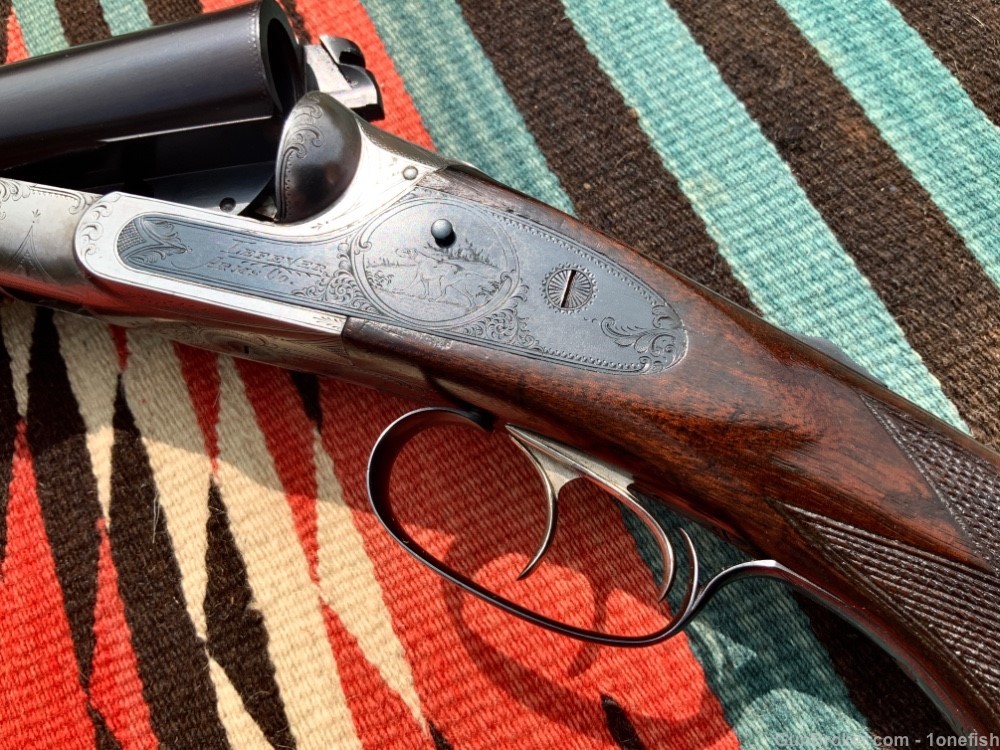 An E Grade ejector nicely refurbished. I doubt the wood is original. The two barrel "set" may be for real, but I doubt it...Geo