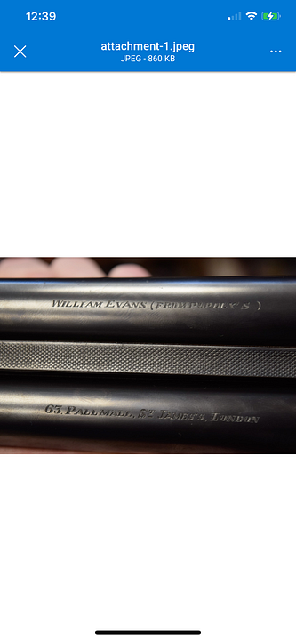 As an addendum, the gun has no other manufacturer name indications, other than those appearing on top of the barrels. Every WE gun I have seen, has his name engraved on the sides of the receiver in some manner, and usually on the bottom with the “ William Evans from Purdey” moniker. Is this a Birmingham un named “ trade” built gun with WE made dovetail lump barrels attached?