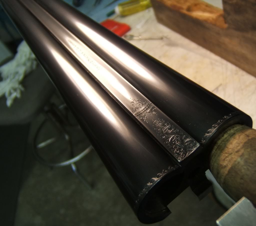 Hi Steven The book's not here yet,....maybe tomorrow! The Piotti formula I had is very symilar to the one I got from Oscar..mercuric chloride, ferric chloride and other nasties, they apparently let the mixed batches of the stuff age,..the longer the better,use a sea sponge to apply it, the rustings are never more than 3-4 hours and they card by hand with fine steel wool, the finish has a high luster if one didn't know better it could pass for hot blue,...I've tried and have gotten close but not quite The pictures are abit grainy but the Holland came ot better than the A&N CJ