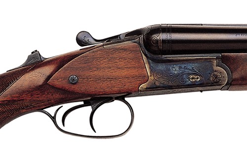 traditional Drilling configuration with two shotgun barrels (SxS) over a