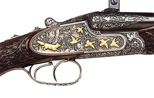 Merkel has numerous gunsmiths and engravers on staff. These individuals are some of the best in the world and are often asked to make custom guns for our clients. In addition we periodically commission our own Merkel "Emporium Guns" for international exhibitions and other special events. These guns allow us the ability to truly show our capabilities and are as elaborate as they are functional. |