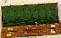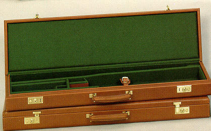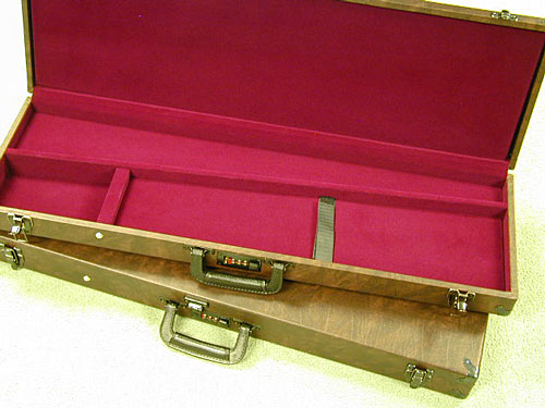 Americase cases. Top of the line in an aluminum case. Heavy duty aluminum construction, with combination lock and extra rugged clasp locks, too. Beautifully fitted interior compartments lined in plush velour fabric. Handy accessory compartment, too. For the ultimate in airline protection! Single gun from $285.00. Two gun. $335.00