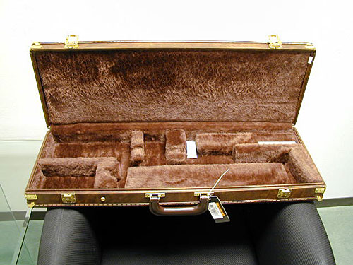 Trunk Style Gun Case - This gun case has a brown leatherette covering
