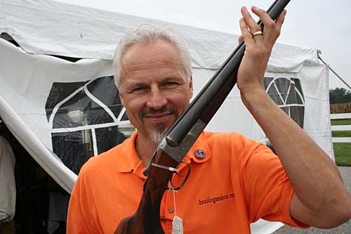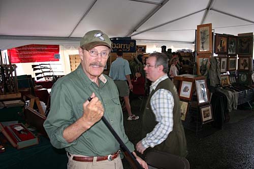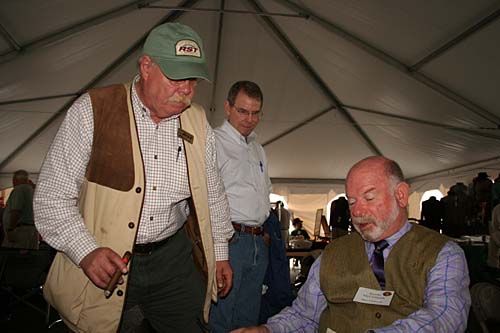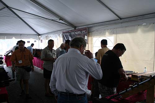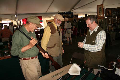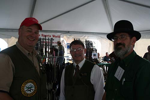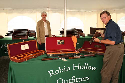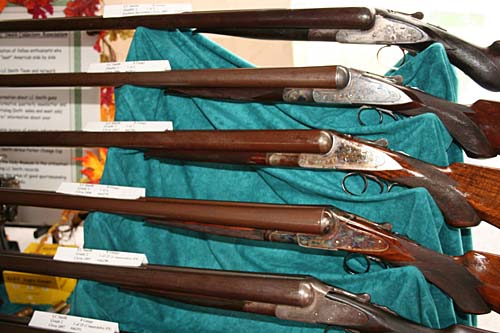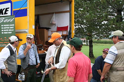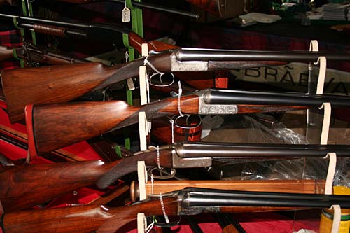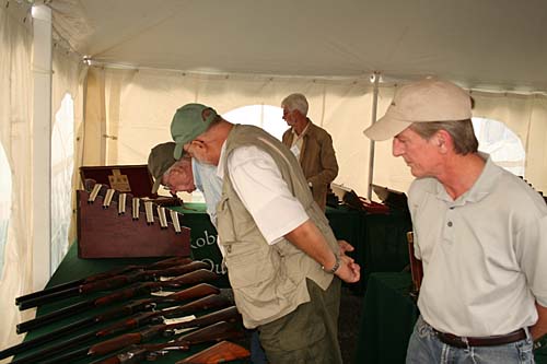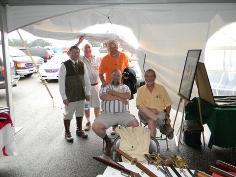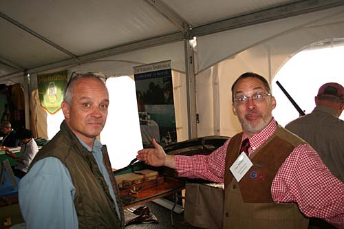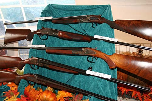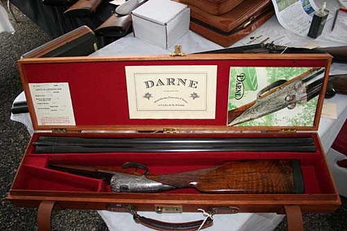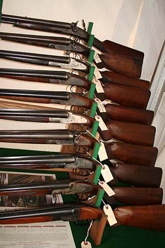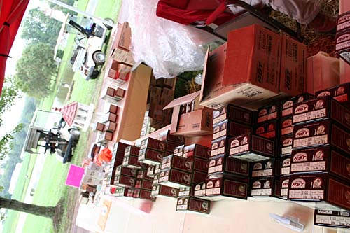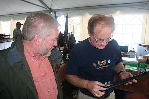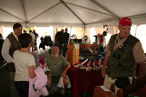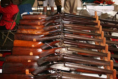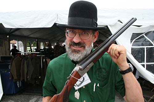 For those of you who could not make the show...Here are some pictures to show what you missed. (Try to ignore the bad flash photography...lighting was less then ideal and my lens was constantly wet or fogged. Also, I did not venture to bring the camera to the shooting areas which were soaked and deep with mud) Pintail Point Venue was largely under water this year and most shooters could have used at minimum hip waders and at certain times full scuba gear! I did snap a few caps on the stalking rifle course once again. Honestly, if it were not for shooters like me the other shooters would not realize how good they really are. I took the 28 bore Darne out on the clays course too....at least there weren't many people watching me miss targets...;-) It was challenging to shoot between the monsoon like rains which came and went all weekend. All pictures shown here are available upon request in full resolution. I welcome requests from individuals for copies of pictures and will gladly send reasonable numbers of high resolution versions via email (they are big around 3 to 5M). Print publications are also welcome to request high resolution versions for publication so long as appropriate credits to "doublegunshop.com" are included upon publication. (This page was complete as of XX/XX/11) As usual...the show was way fun...Lots of nice people and guns too! Next year 2012! Back to our roots...The Vintage