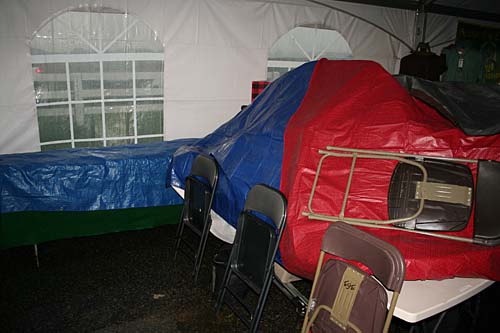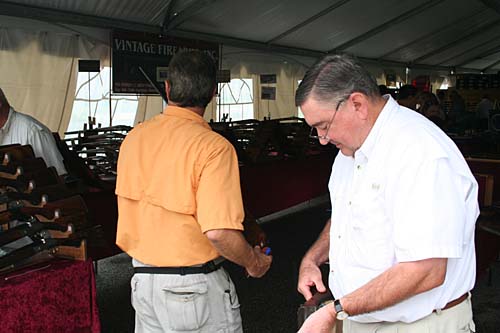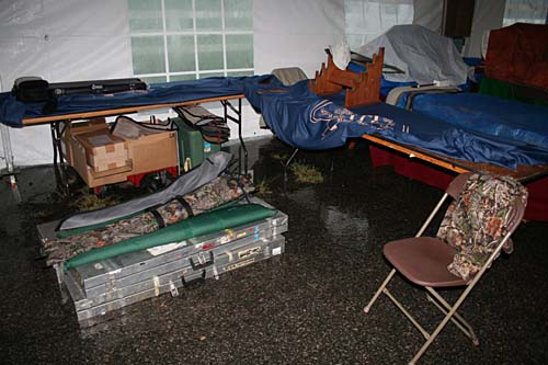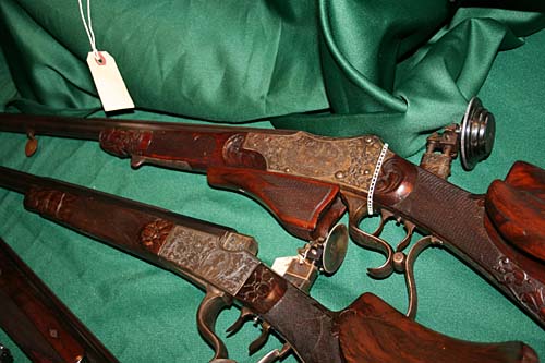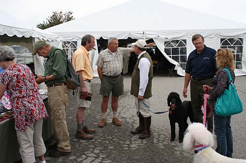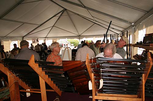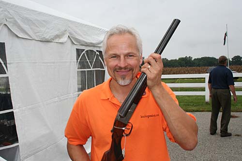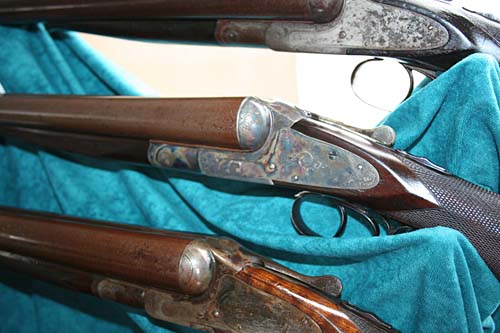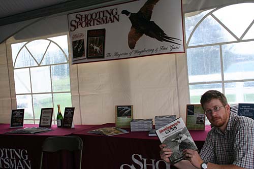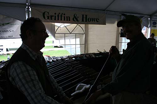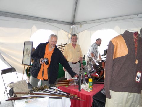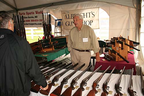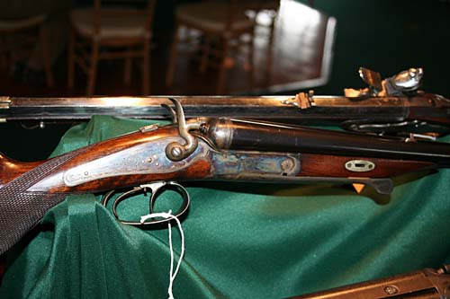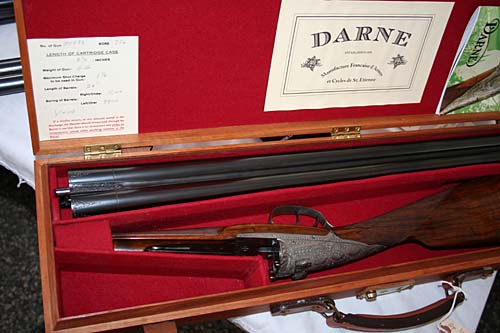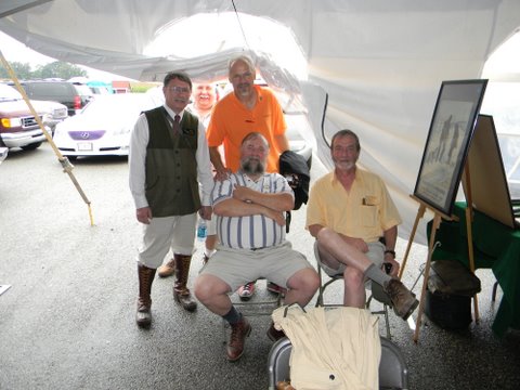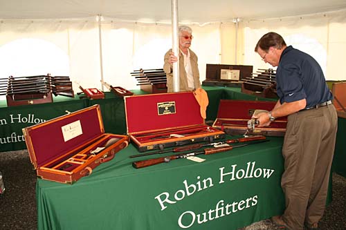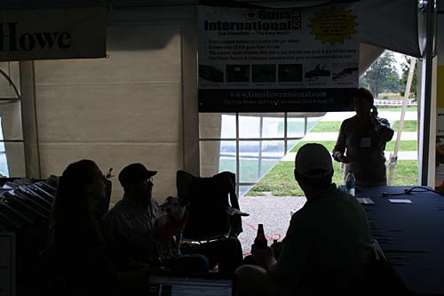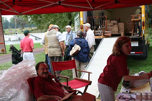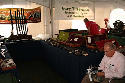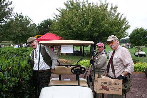 For those of you who could not make the show...Here are some pictures to show what you missed. (Try to ignore the bad flash photography...lighting was less then ideal and my lens was constantly wet or fogged. Also, I did not venture to bring the camera to the shooting areas which were soaked and deep with mud) Pintail Point Venue was largely under water this year and most shooters could have used at minimum hip waders and at certain times full scuba gear! I did snap a few caps on the stalking rifle course once again. Honestly, if it were not for shooters like me the other shooters would not realize how good they really are. I took the 28 bore Darne out on the clays course too....at least there weren't many people watching me miss targets...;-) It was challenging to shoot between the monsoon like rains which came and went all weekend. All pictures shown here are available upon request in full resolution. I welcome requests from individuals for copies of pictures and will gladly send reasonable numbers of high resolution versions via email (they are big around 3 to 5M). Print publications are also welcome to request high resolution versions for publication so long as appropriate credits to "doublegunshop.com" are included upon publication. (This page was complete as of XX/XX/11) As usual...the show was way fun...Lots of nice people and guns too! Next year 2012! Back to our roots...The Vintage