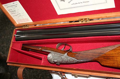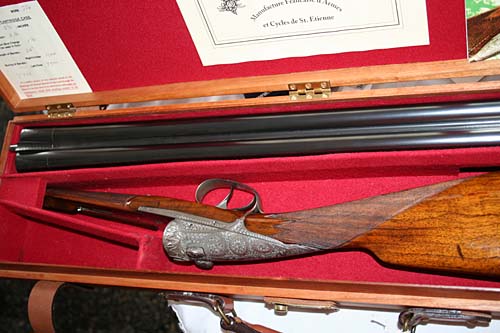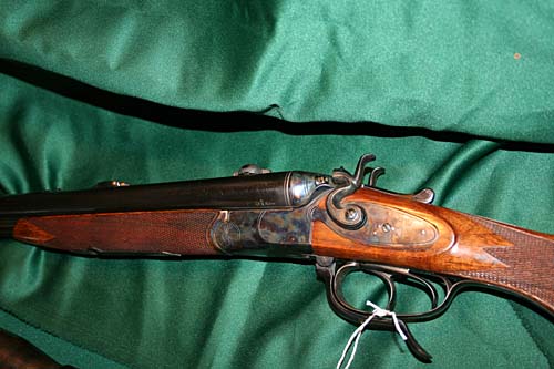 ![]() Yes, that's an Ithaca 12 bore NID....that has been professionally modified for up close an personal bunny blasting and a woodcock hunting in thick cover (no kidding the stubby barrels were finished off quite nicely and it even has dual bead sights). The owner saw I was fascinated by it and keep bringing it by our booth. Needless to say he still owns it as I like a bit more barrel length on my doubles but it did take a nice picture. |